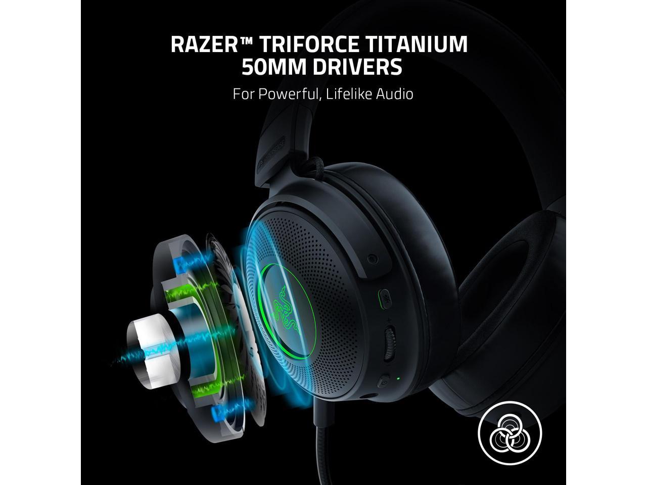 Razer Kraken V3 Pro HyperSense Wireless Gaming Headset w/Haptic Technology: Triforce Titanium 50mm Drivers - THX Spatial Audio - HyperSpeed Wireless - Hybrid Fabric & Leatherette Memory Foam Cushions