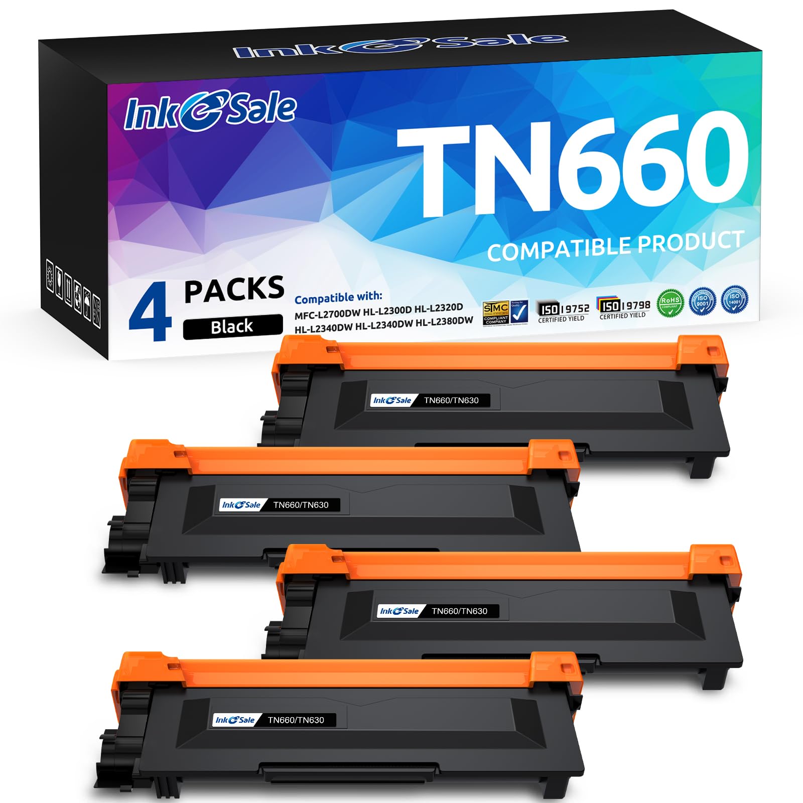 Package includes: 4 packs black TN 660 TN 630 toner cartridges (Design V3) and 1 User Guide