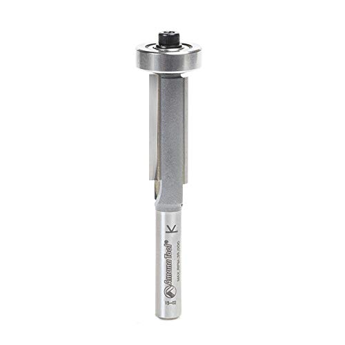 Stage flush trimming cuts, whether in Laminate work or template work, with this bit. Trimming the material in two passes reduces chipping in laminates and Tearout in solid wood. A preliminary cut with the overhang bit leaves a small overhang in Laminate or template work, leaves an edge slightly protruding the template., #47195, diameter (D) 3/8, cut depth (a) 1/8, cutting Height (B) 1, shank (D) 1/4, overall length (L) 2-5/8, replacement bearing 47718, flutes 2, 47195 carbide Tipped overhang trim 1/8 overhang x 3/8 dia x 1 x 1/4 inch Shank