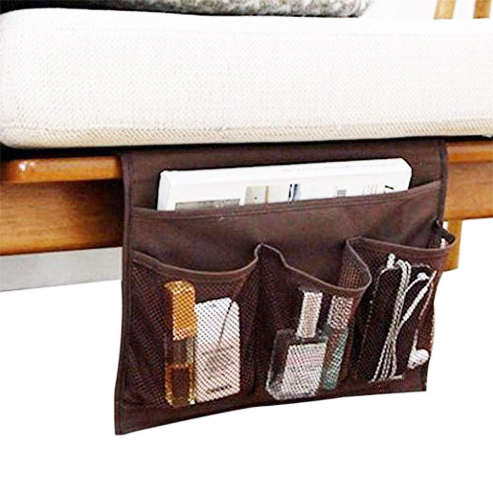 Material:Oxford cloth . Size:13.38*8.85 inches.The bedside storage organizer has 1 large pocket and 3 mesh pockets. Inserting board is designed for placing under the mattress.