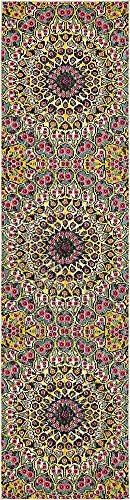 Size in FT: 2' 7 x 10' 0 - Size in CM: 80x305 - Pile Height & Thickness: 1-2" - Colors: Multi, Yellow