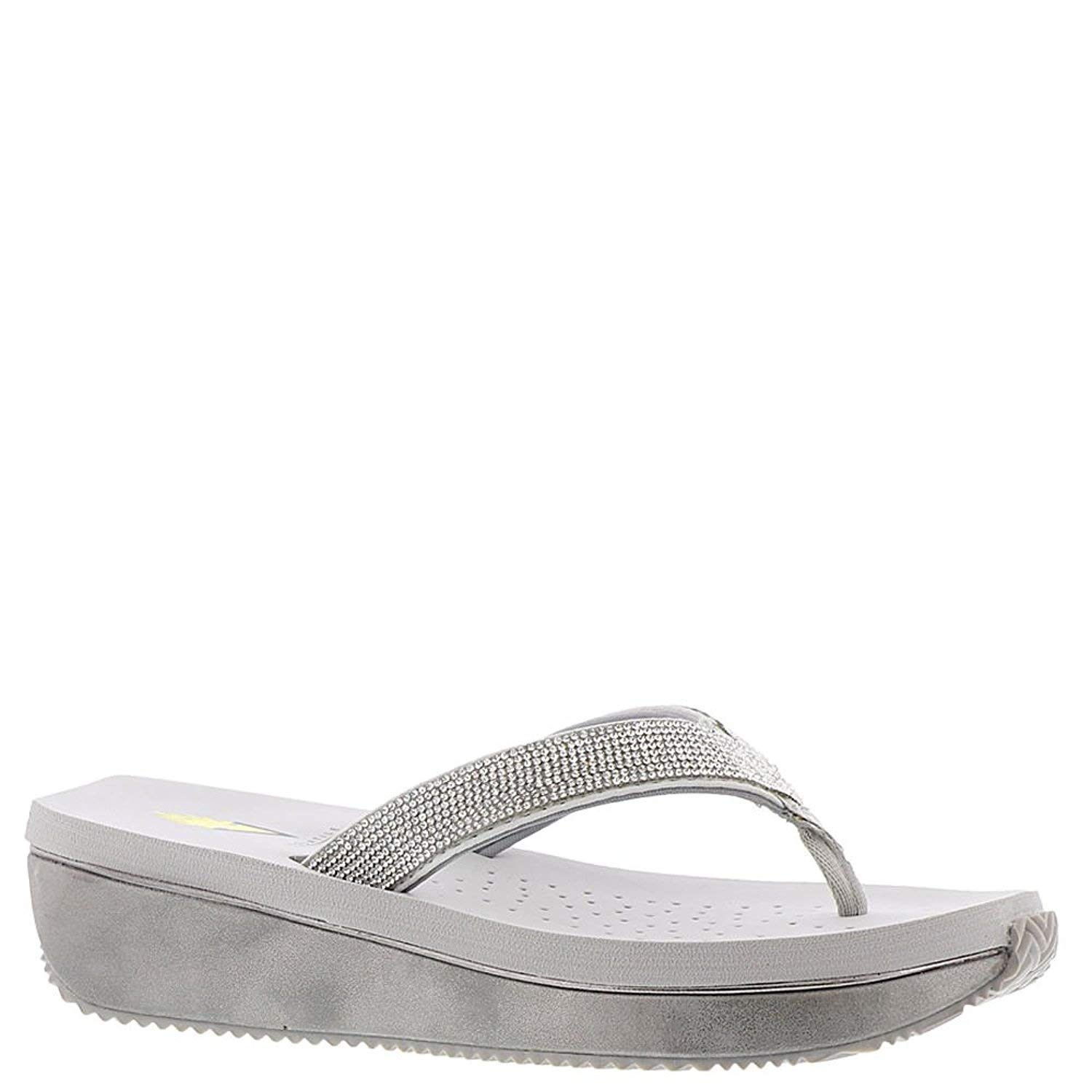 VOLATILE Women's Eleanor Leather Rhinestone EVA Wedge Sandals Silver Size 9