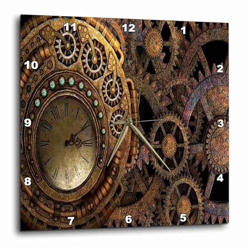 new | 3dRose Wall Clock Silent - 10 inch - Image of Bejeweled Clock and Color Metal Steampunk Gears - Lens Art by Florene - Steampunk