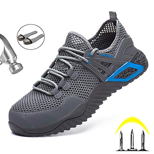 Steel Toe Shoes Mens Womens Safety Work Industrial Construction Breathable Sneakers Outdoor Lightweight Non Slip Cushioned Shoes (Color : Gray, Size : 41)