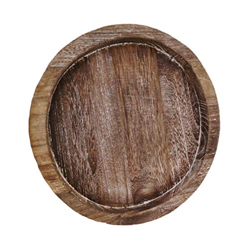 KESYOO Wooden Serving Tray Candle Holder Rustic Round Wood Tray Food Platter Candle Holder Home Kitchen Decor 20.5cm