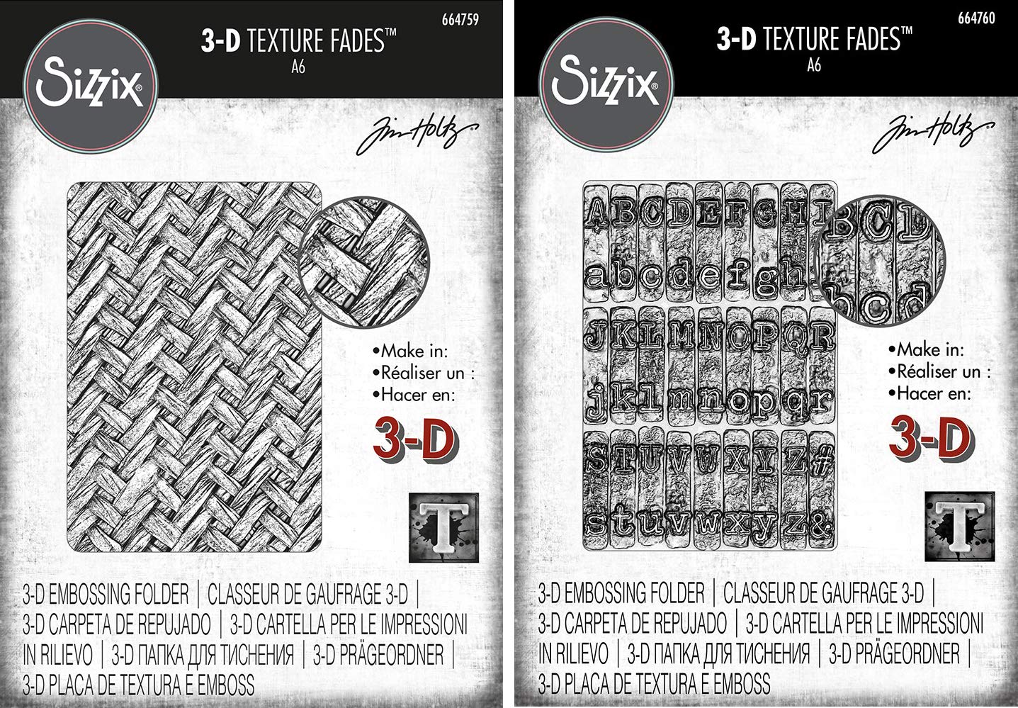 Tim Holtz Sizzix 3D Texture Fades Embossing Folders - Intertwine and Typewriter - 2 item bundle