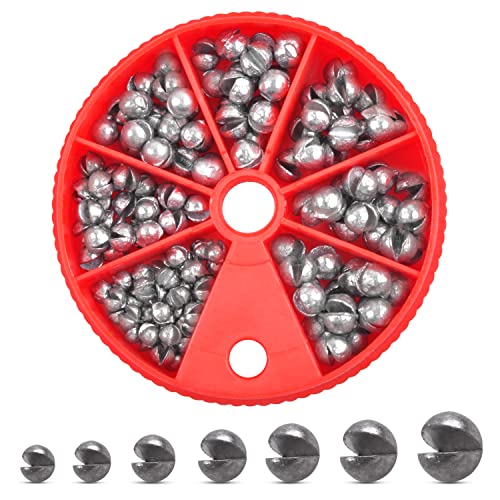 Durable Construction: Fishing split shot weights are made of high density pure lead,Round and unique streamlined design reduces the resistance fall into water.The fishing sinkers with central cut will not break your braided fishing line