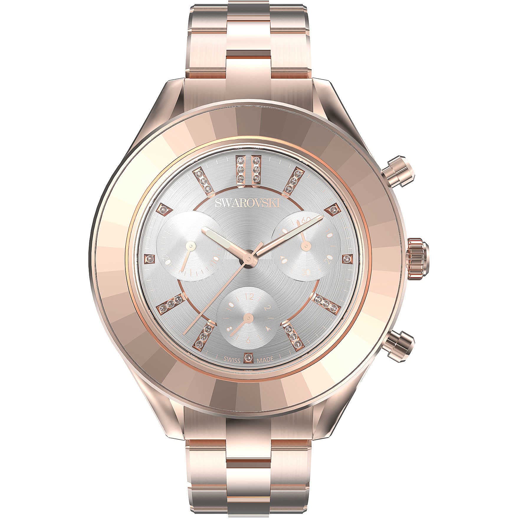 Items delivered: (1) Swarovski Octea Lux Sport watch with sunray dial and rose gold tone steel casing on three-link metal band, water-resistant design, complete with Swarovski watch box