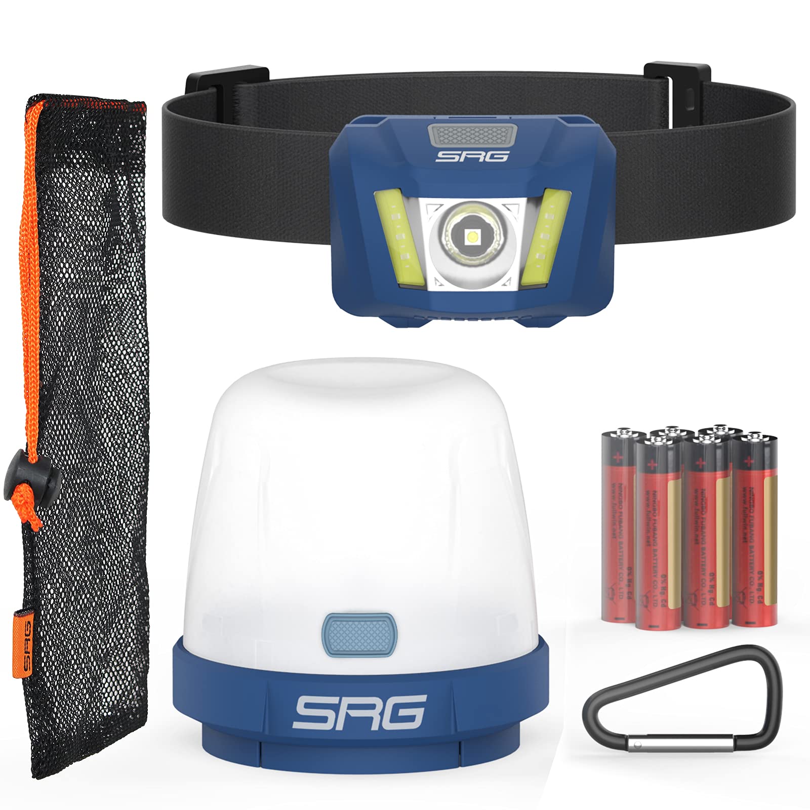 ✅ 【Indoor and Outdoor Ltght】SRG headlight and camping light set are suitable for indoor and outdoor, running, camping, hiking, cycling, fishing, jogging, adult and children lights, can support high temperature or rain and snow weather-flashlights for emergencies.