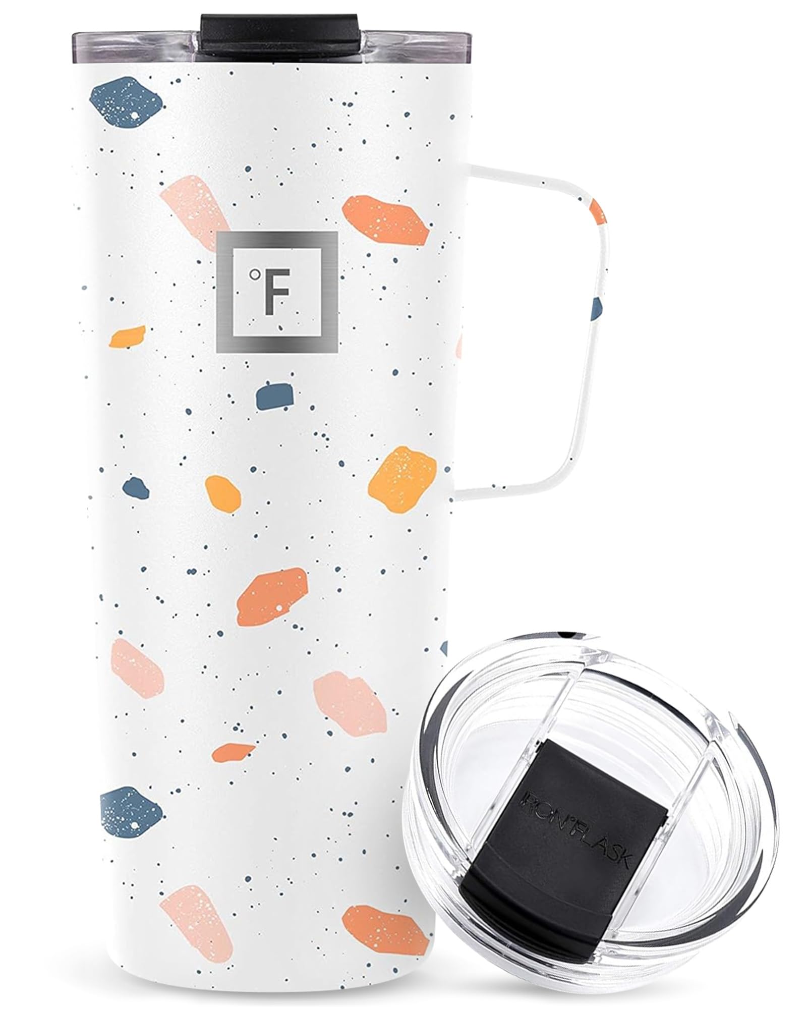 new | IRON °FLASK Grip Novelty Coffee Mug - Leak Proof, Vacuum Insulated Stainless Steel Bottle, Double Walled, Thermo Travel, Hot Cold, Water Metal Canteen - Ocean, 24 Oz - Rubber Bottom