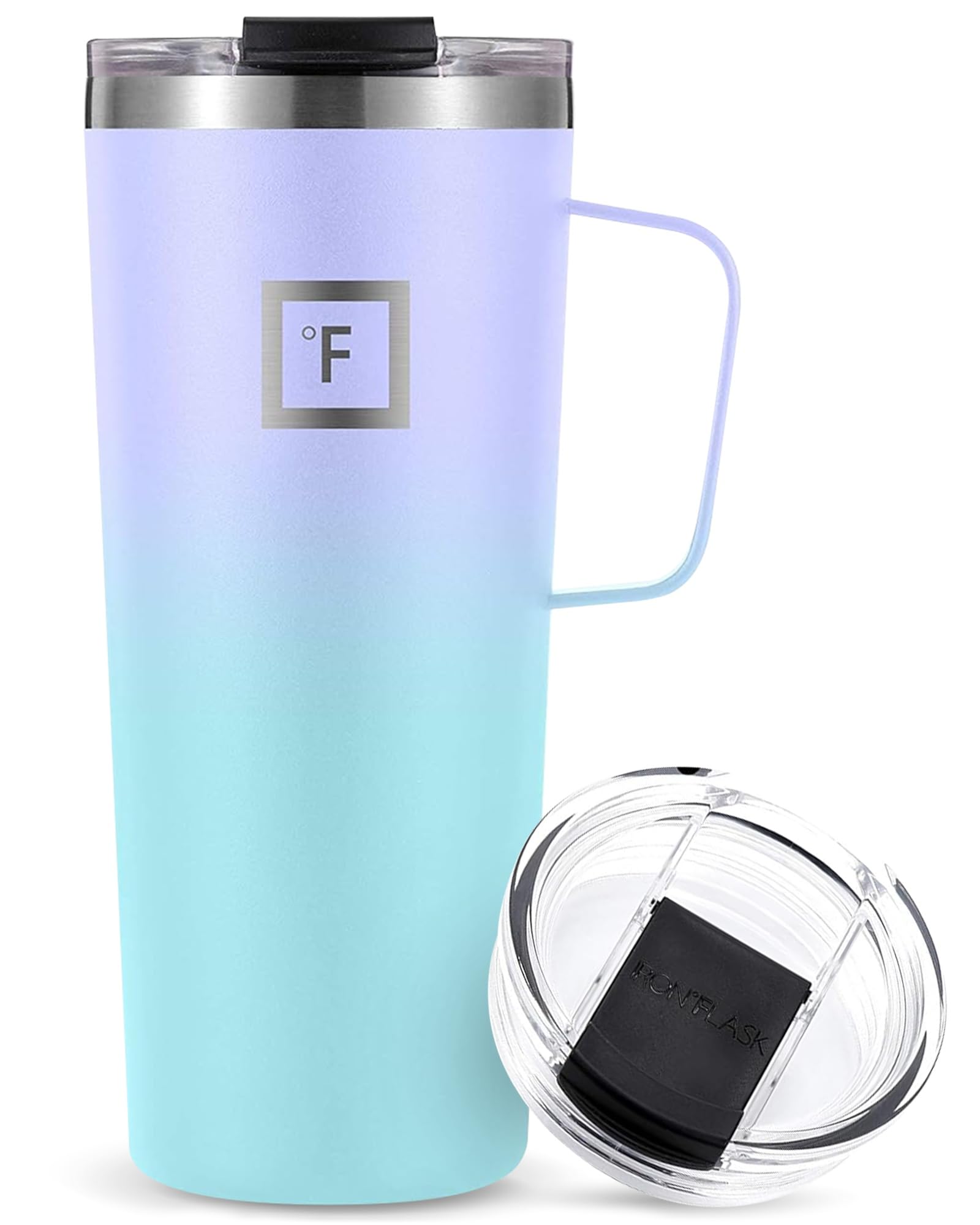 new | IRON °FLASK Grip Coffee Mug - Leak Proof, Vacuum Insulated Stainless Steel Bottle, Double Walled, Thermo Travel, Hot Cold, Water Metal Canteen - Terrazzo, 24 Oz - Rubber Bottom