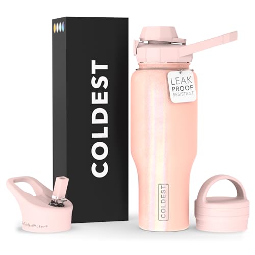 new | Coldest Sports Water Bottle - 3 in 1 Lids (Chug, Straw, Handle) - Insulated Stainless Steel Tumbler with Handle - Vacuum Water Flask Cup, Valentines Gifts for Him Her (26 oz, Forever Pink Glitter)