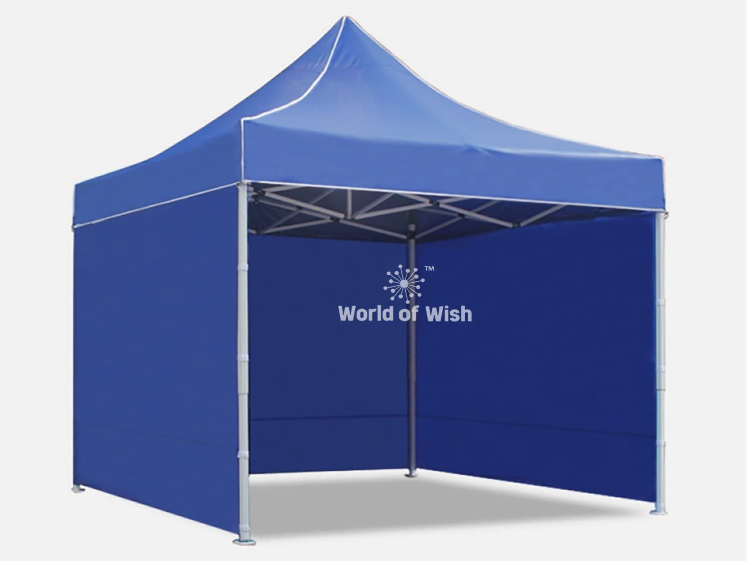 SIZE : 3 X 3 Meter/ 10 ft X 10 ft with 3 Side Cover , Clear Height : 7 Feet, Full Height Till Dome : 10 Feet, COLOUR- Blue