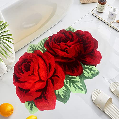 UNIQUE DESIGN: Ukeler rose shaped non slip bathroom rug size is 27.5 inches X 23.6 inches, the rose pattern of the microfiber bath mat is super cute and romantic. Nice gift for our family or friends!