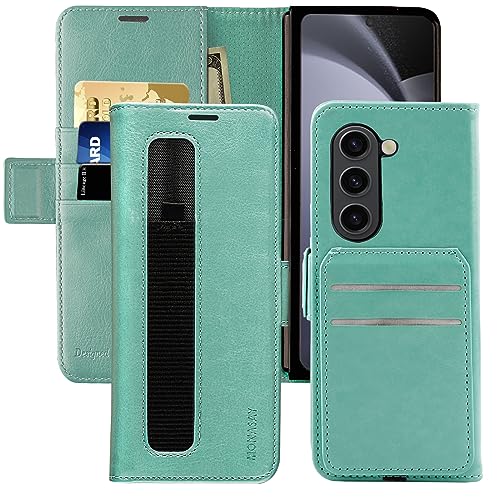 new | MONASAY Wallet Case Compatible for Galaxy Z Fold 5 5G with S Pen Holder, Flip Folio Leather Cell Phone Cover with RFID Blocking Credit Card Holder, Mint