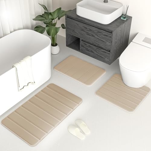 【Perfect Size Bath Rugs for Bathroom】: There are 1* 20"x32"+1*U-Shape 20"x20"+1*16"x24" sizes in the memory foam bathroom rugs package. Perfect size 3 piece bath rugs for bathtub, toilet, washing basin, take it easy to enjoy the bathing time.