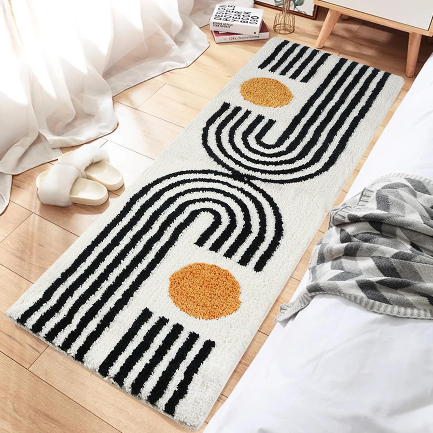 new | Carmoion Boho Bathroom Runner Rug 20"x60" Long Non-Slip Abstract Bath Mat Soft Plush Fluffy Washable Decor Beige for Bedroom