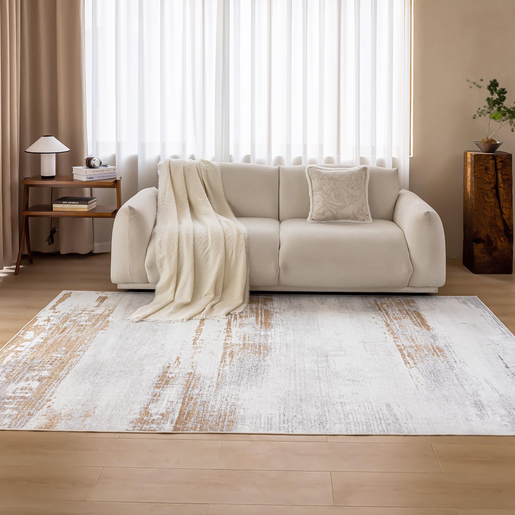 OMERAI Washable Rug 5'x7' Abstract Machine Washable Area Rugs for Living Room Ultra-Thin Non Slip Stain Resistant Modern Carpet for Bedroom Dining Room Office Kitchen (Orange Gold)