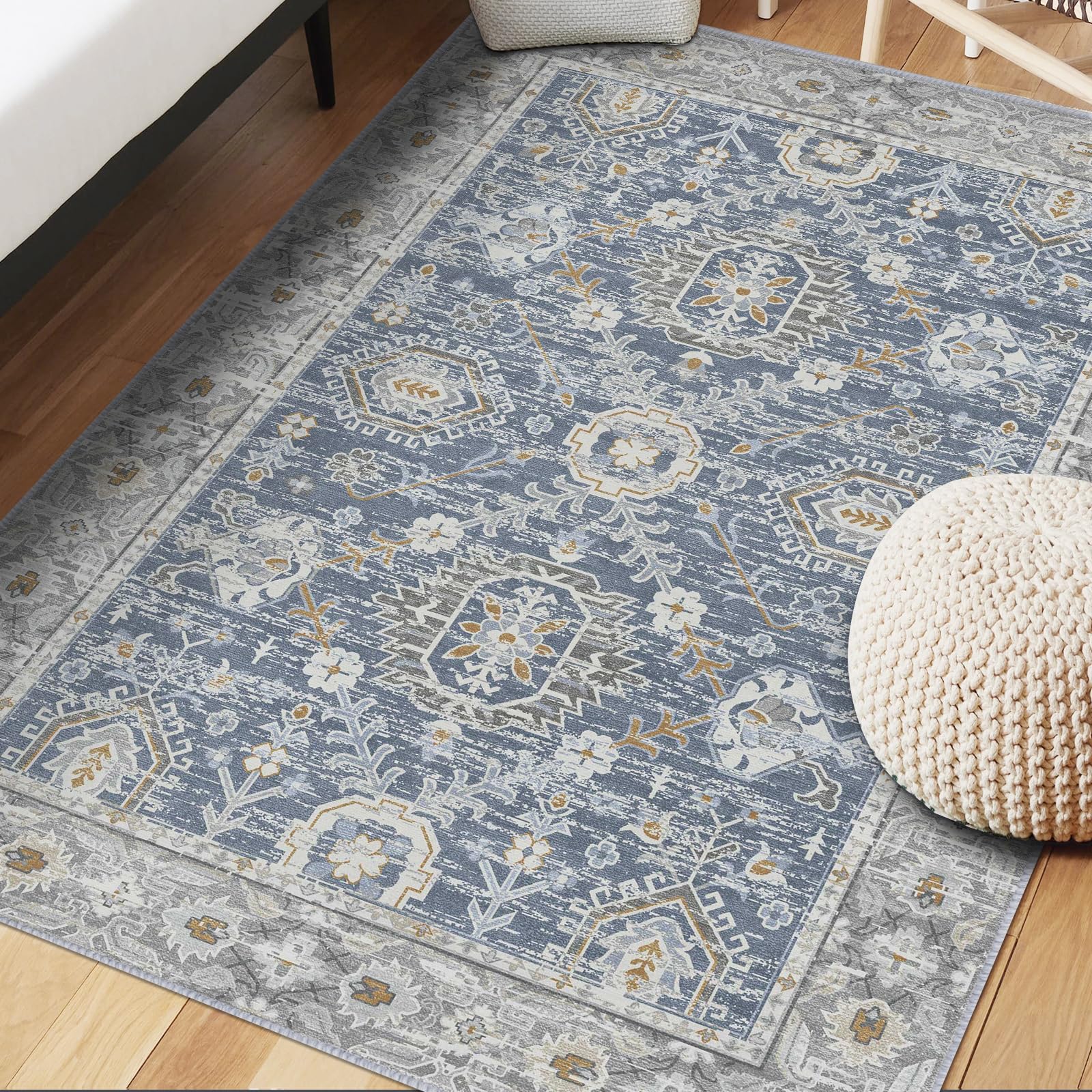 【Washable Area Rug】: Designed for convenience, our bedroom rug is easy to clean. Simply vacuum, spot clean or use robo-vac for a fresh look. Once get dirty, you can put it in your washing machine. It is stain-resistant and fade-resistant, stands up to everyday wear and tear.