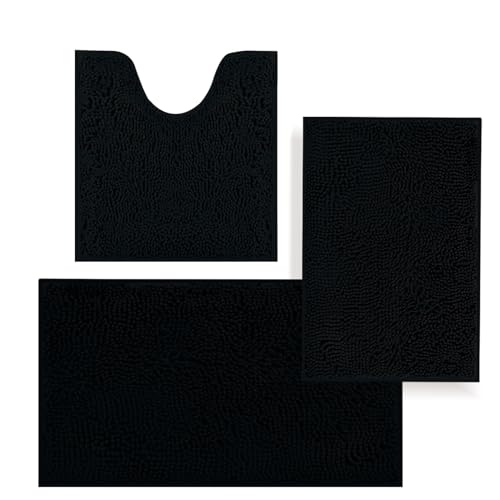 【Extra Absorbent Bathroom Mats】Bath rug sets consisting of three layers, they feature a top layer with 1" long individual microfiber pile, made from thick chenille fabric, a middle layer of sponge for added cushioning, and a non-slip PVC liner at the base.When you step out of the tub, shower or get ready in the sink, thick chenille piles quickly absorb moisture from your feet and keep the floor clean.