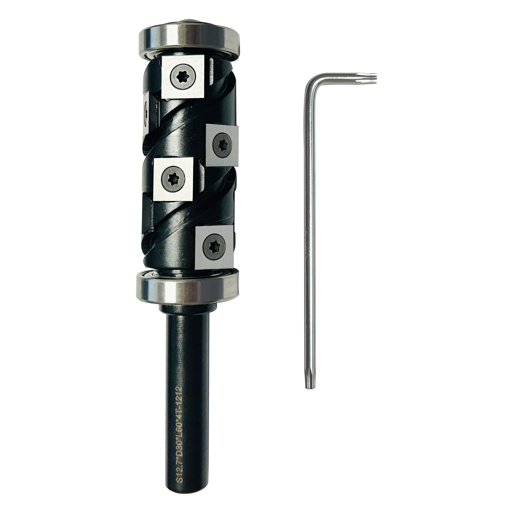 Suitable for cutting softwood, hardwood, plywood, etc. With replaceable tungsten carbide insert achieve high work efficiency. Carbide insert specification: 12x12x2.2mm-4R-0.5 The recommended torque spec for the insert knife is 3Nm. Maximum speed:16000rpm. The cutting type is Upcut.