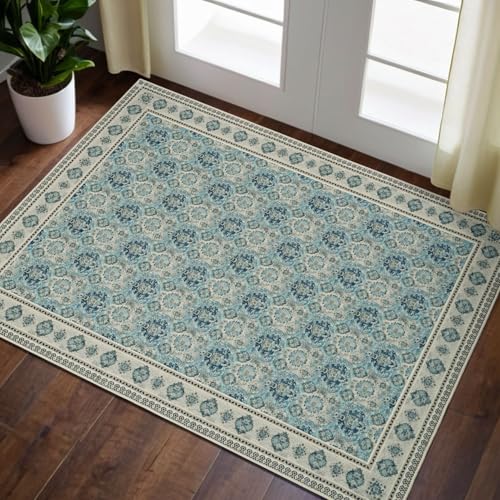 new | TTelephant Floral Doormat Entryway Rug Washable Area Rug 2x3, Spill-Proof Surface, Non-Slip Backing, Cozy Soft Faux Wool, Printed Rugs for Kitchen, Bathroom, Bedroom - Ieve