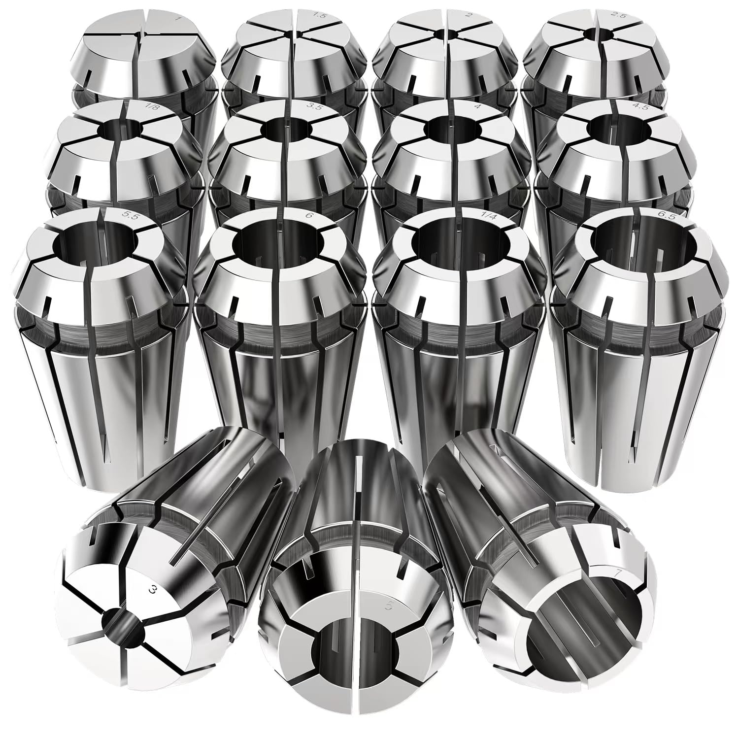 new|15pcs ER11 Spring Collet Set for CNC Engraving Machine and Milling Lathe Tool 1mm,1.5mm,2mm,2.5mm,3mm,3.5mm,4mm,4.5 mm,5 mm,5.5 mm,6 mm,6.5 mm,7mm,1/4",1/8"