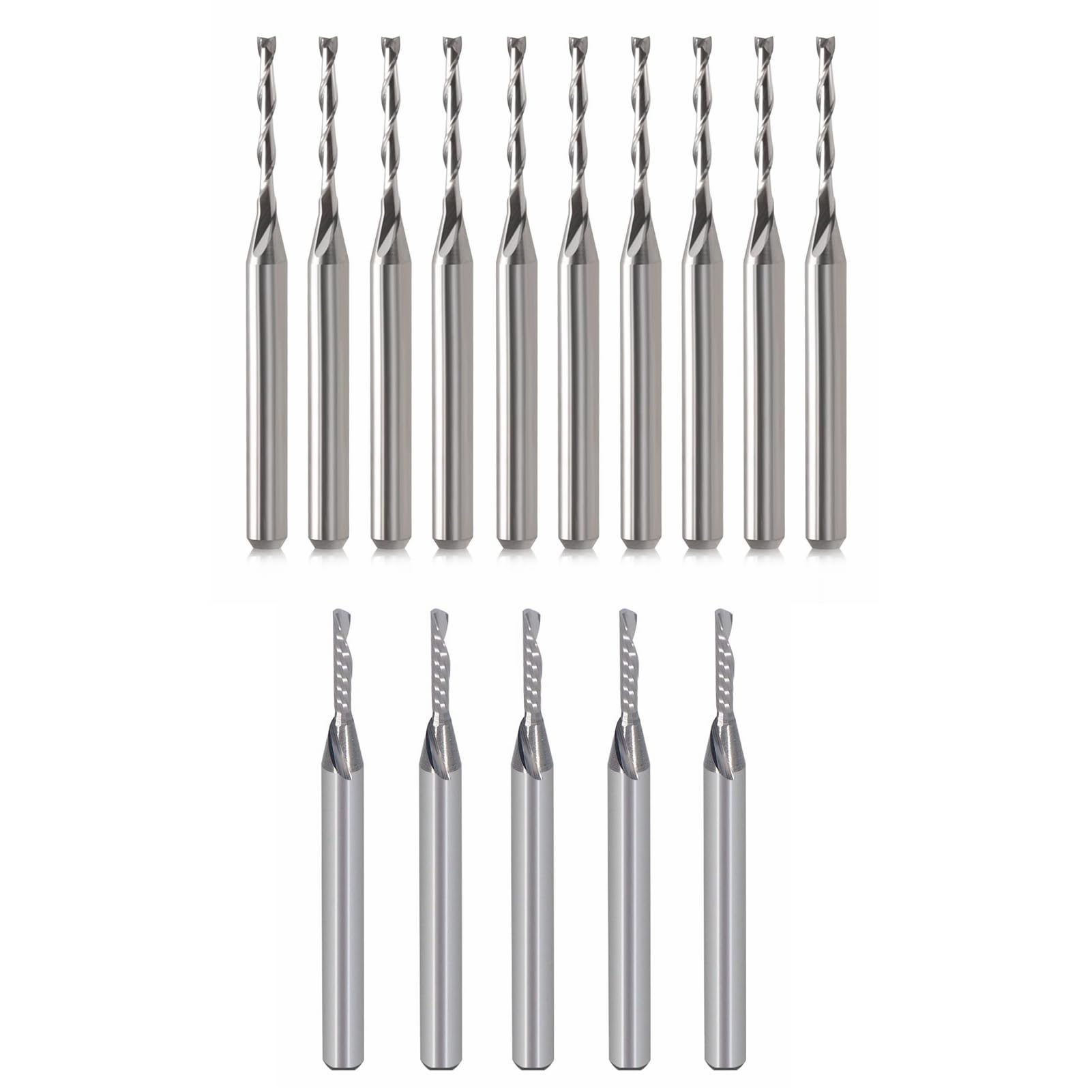 new|Two Flute Spiral Upcut Milling Cutter Tool 1/8" Shank,1/16" Cutting Dia + 1/8 Inch Down Cut Single Flute (O Flute) Spiral End Mill CNC Router Bits ,with 1/16 Inch Cutting Dia