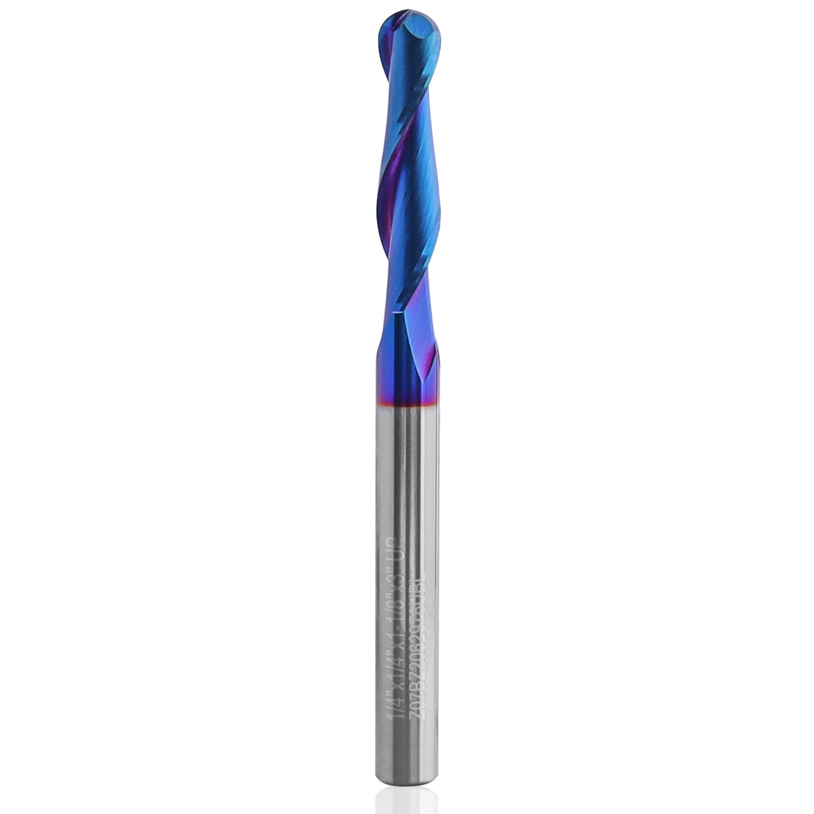 Yakamoz Carbide Ball Nose CNC Router Bit 1/4" Shank, Long 1-1/8" Cutting Length Spiral Ball Nose End Mill Wood Milling Tool with Blue Nano NACO Coating